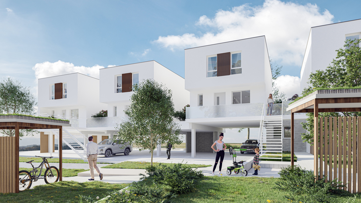 La conception privilégie une insertion douce dans le tissu pavillonnaire, avec des volumes simples, des stationnements intégrés et des espaces extérieurs privatifs (balcons, jardins, terrasses) pour l’ensemble des typologies.